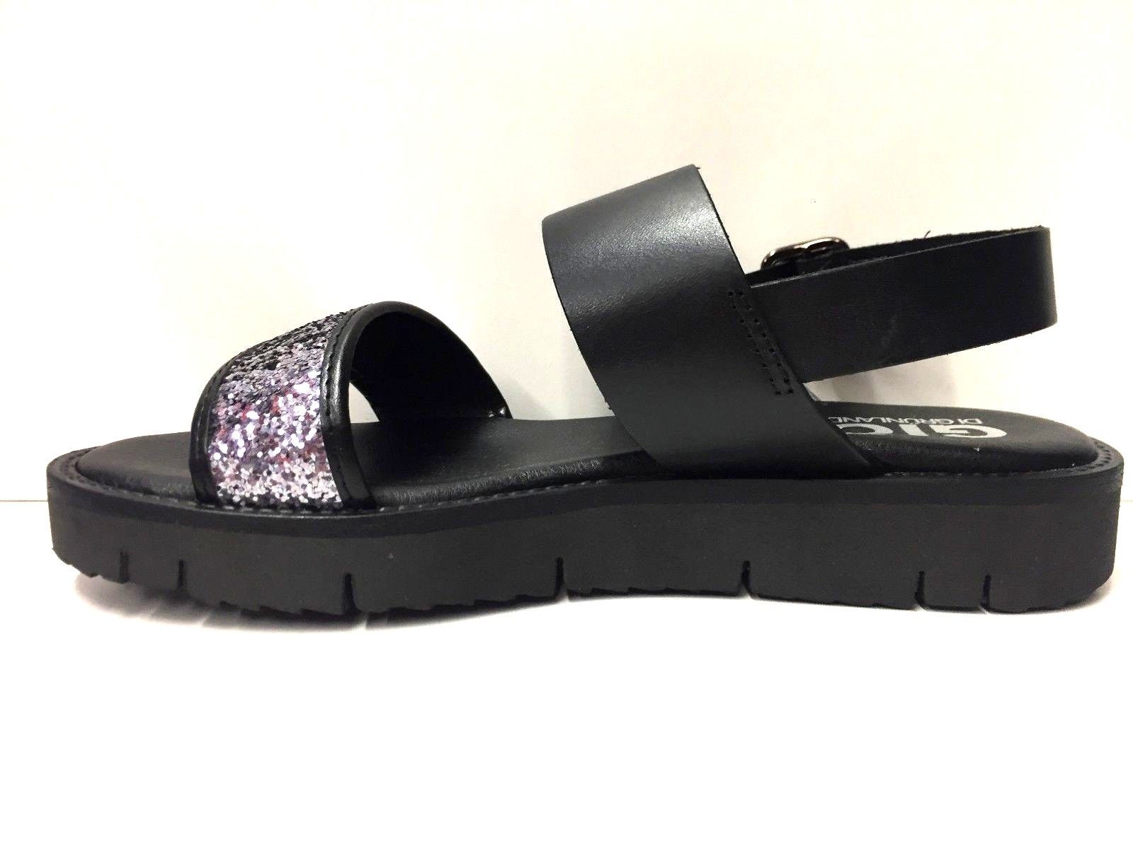 Sandalo in pelle vitello + strass, sottopiede in pelle.