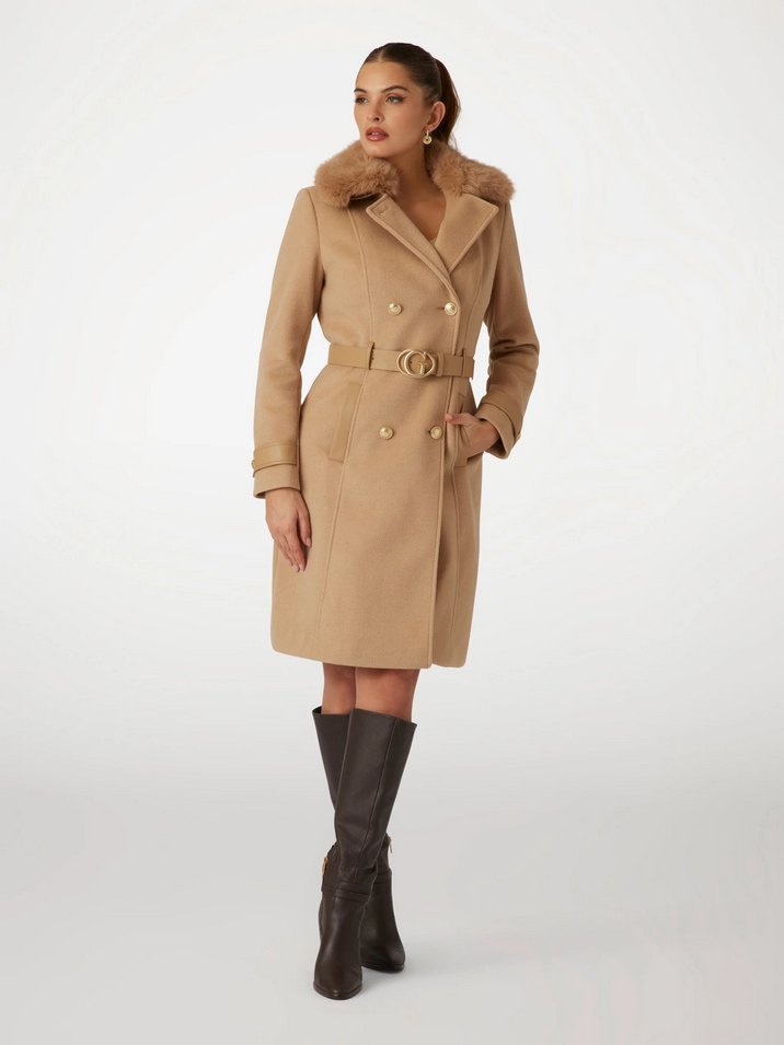 Cappotto con collo in pelliccia sintetica
