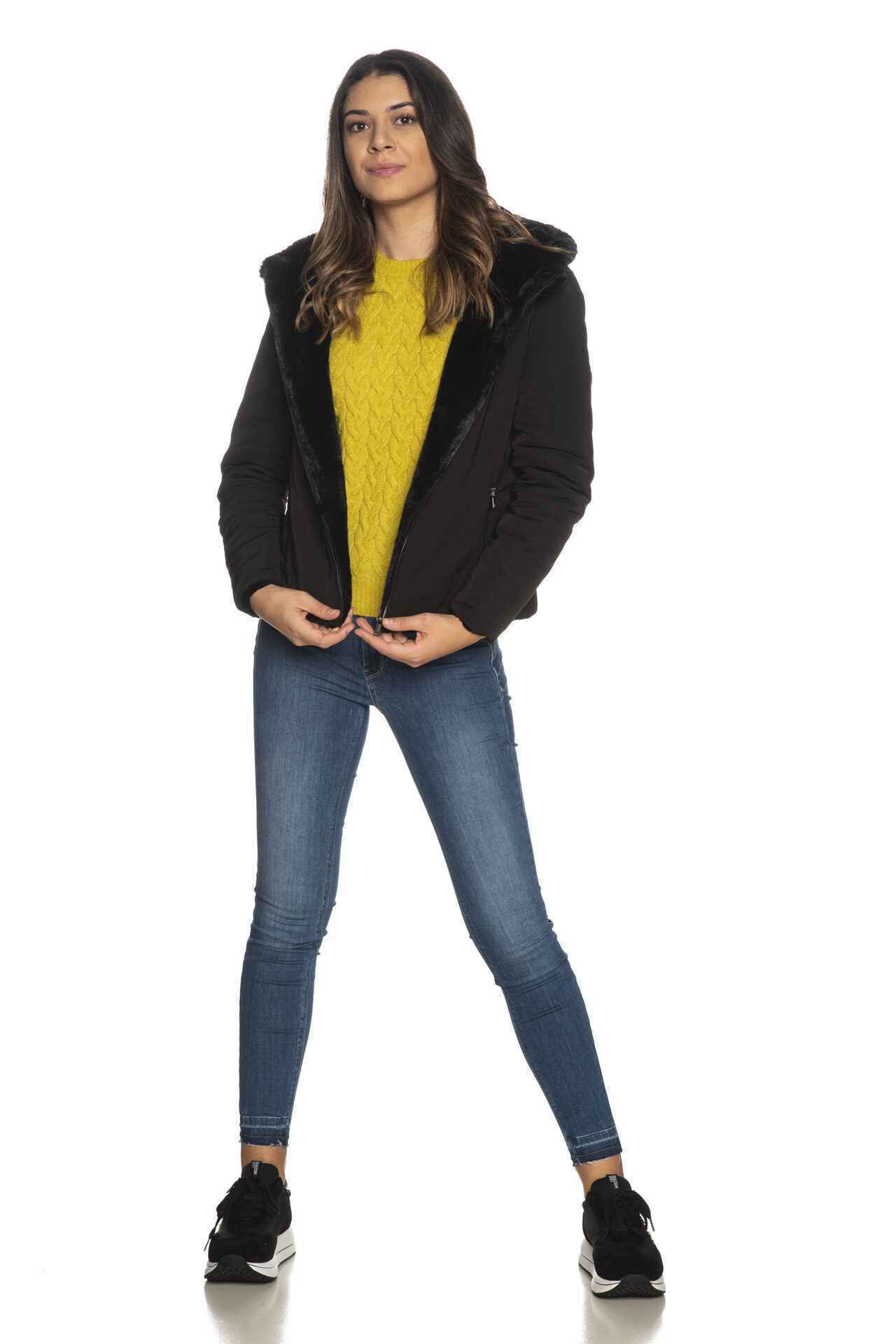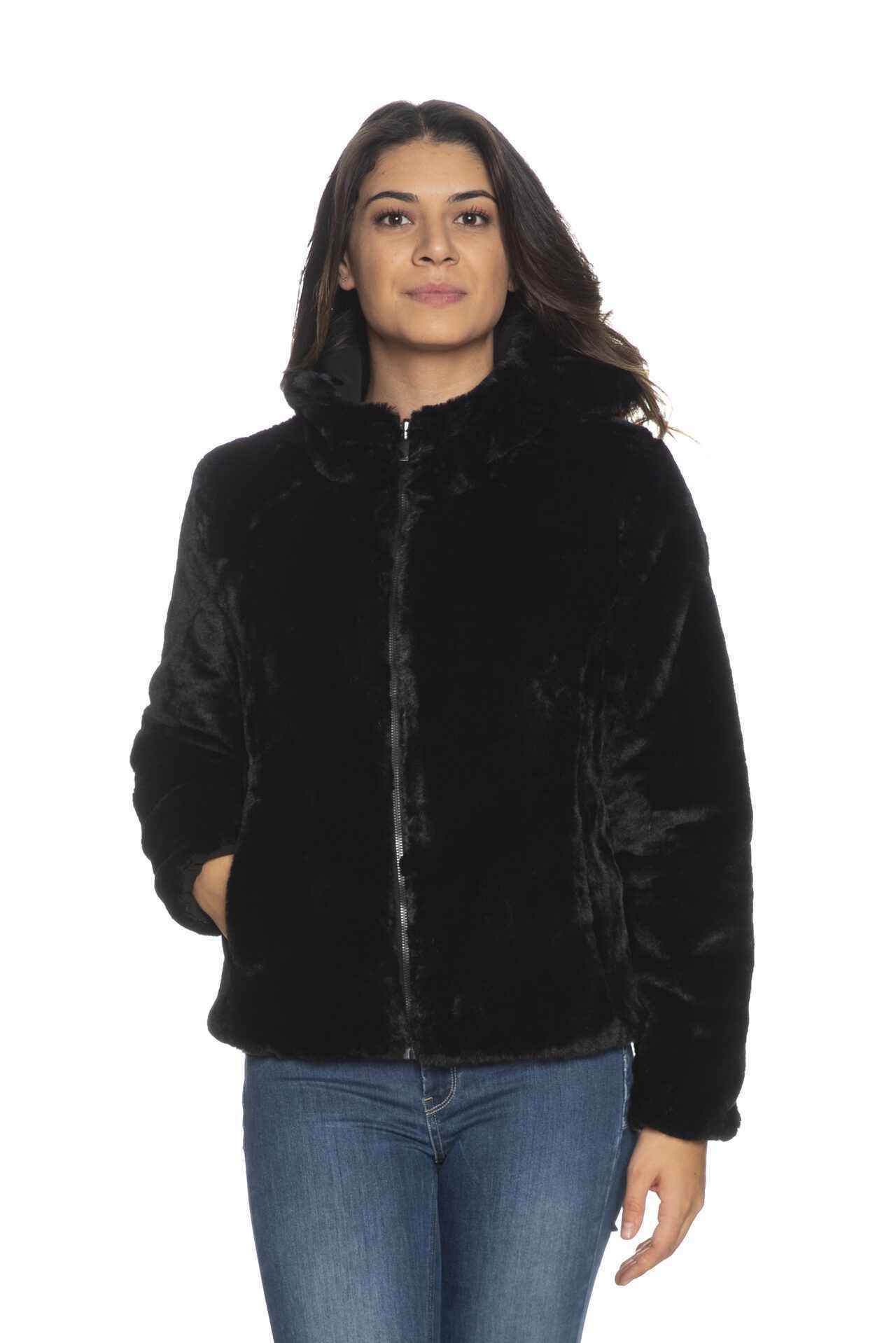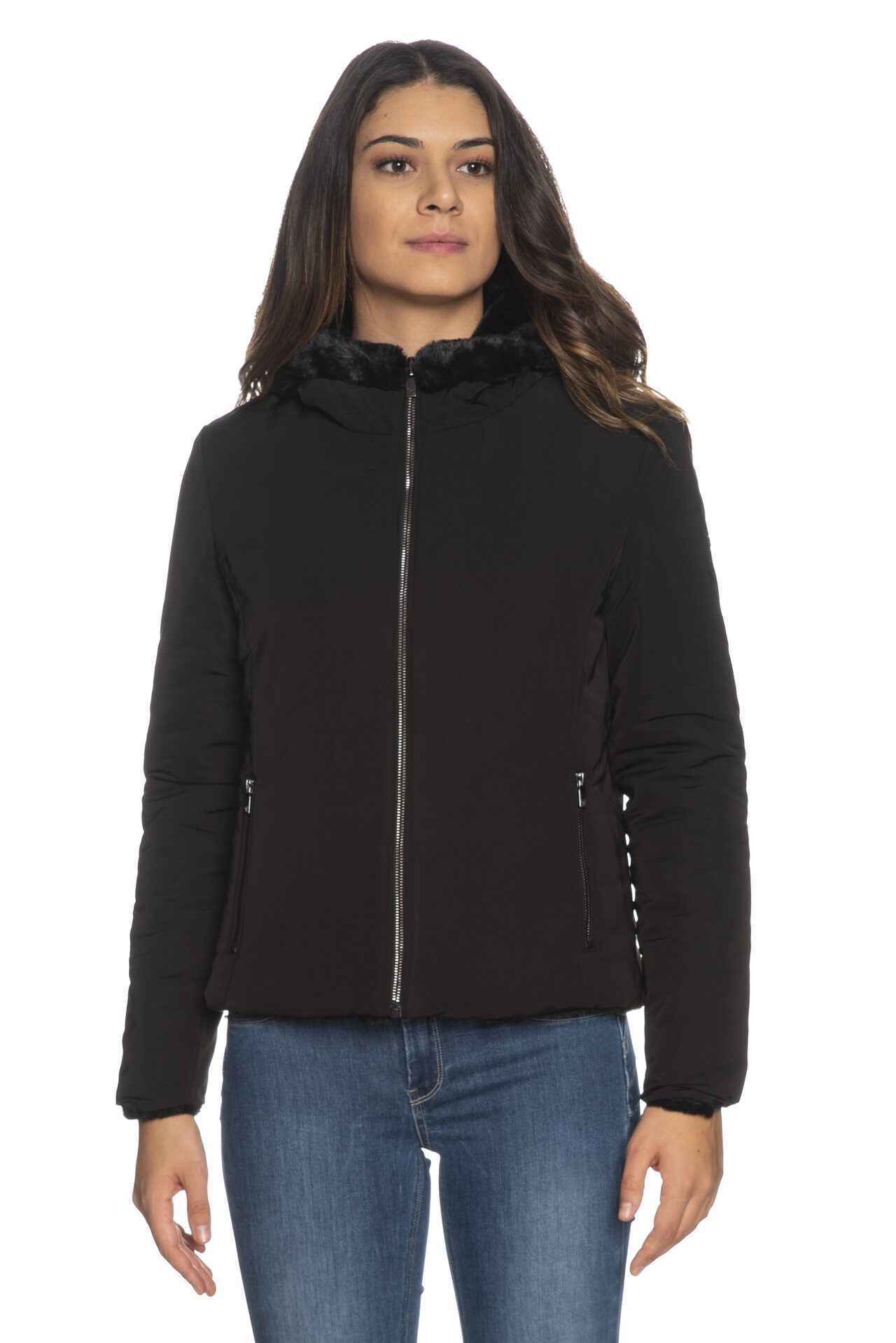Giubbotto Ciesse Piumini Alba Eco nero corto reversibile con lato liscio e lato in ecopelliccia imbottitura